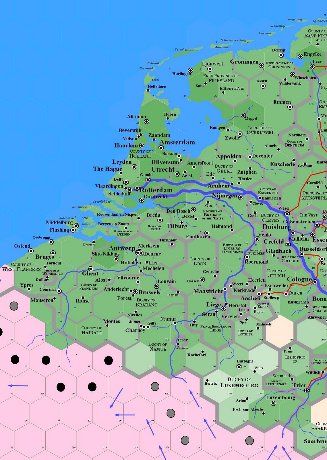 But, that time is nearly over. I have perhaps three more weeks after this to post what I have, mostly the southern edge of what's mapped, and then nothing. Oh, yes, I will occasionally print updates, like the addition of the Low Countries I finished last week. But the big complete maps, those will all be up.